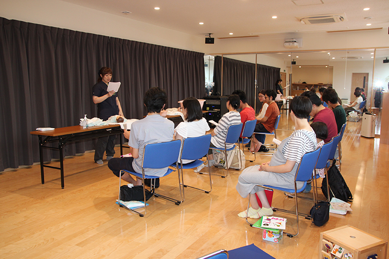 かわいい赤ちゃんの誕生に向けて、パパの妊婦体験や赤ちゃんのお世話(おむつのあて方、沐浴等)の練習などを楽しく行っております。